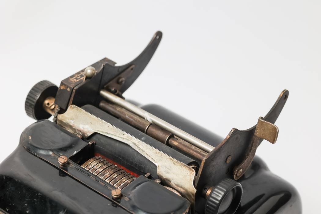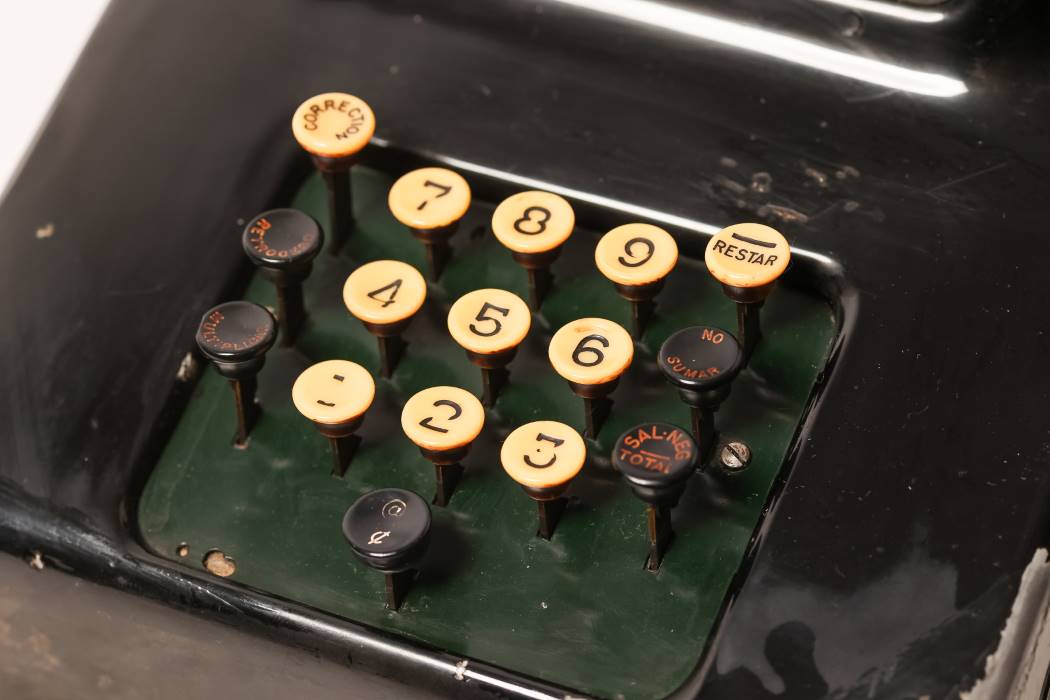 Calculadora de sumar con teclado de baquelita. Fabricado por UNDERWOOD SUNDSTRAND de Estados Unidos. Teclado realizado en baquelita y armazón de hierro. Le falta la llave para el movimiento del rodillo