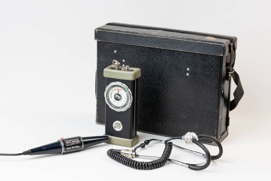 El instrumento mide los niveles de impulsos de choque con un estetoscopio electrónico para detectar irregularidades en la máquina.