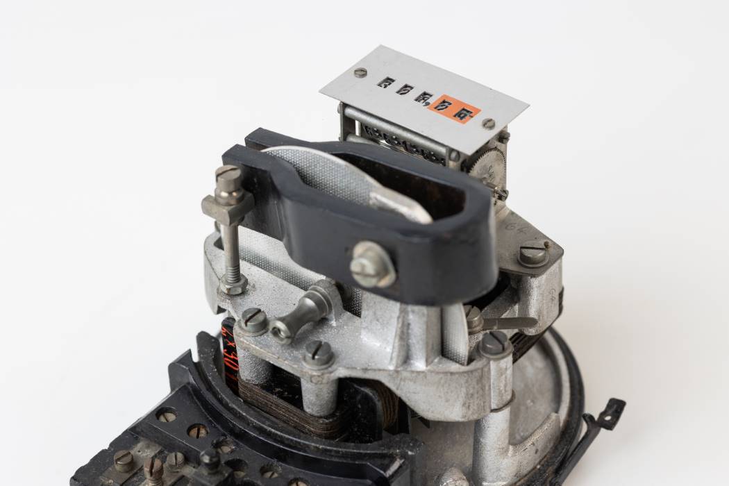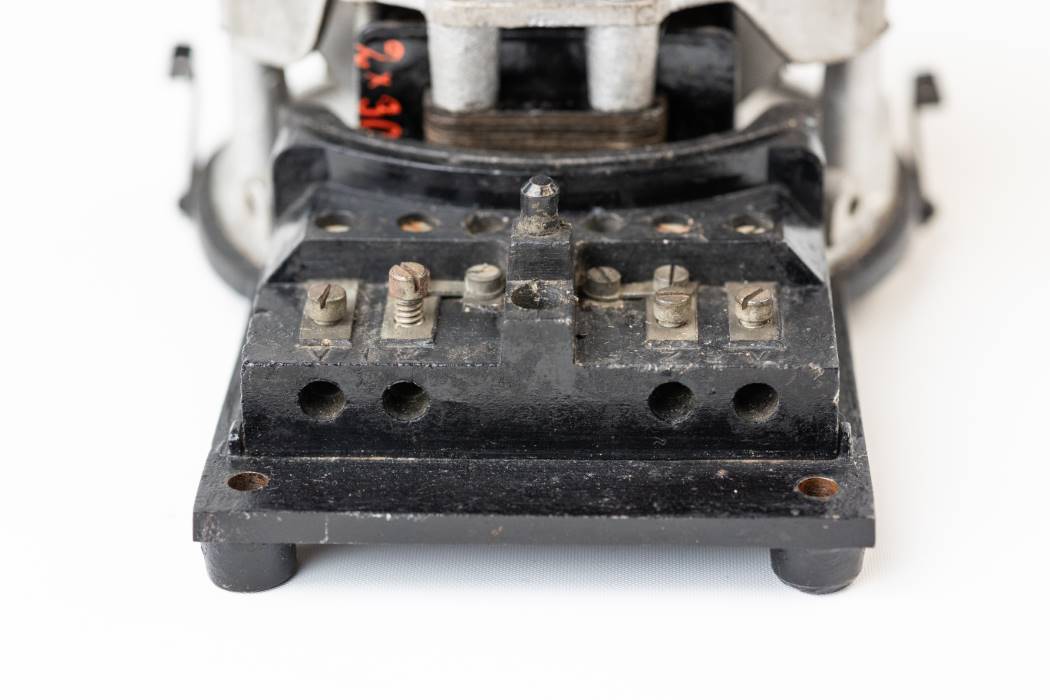 Contador monofásico de CA murario para negocios y hogares, fabricado por B. KETTER SÖHNE, en Alemania entre 1899-1920. La protección del equipo está realizada en hierro.