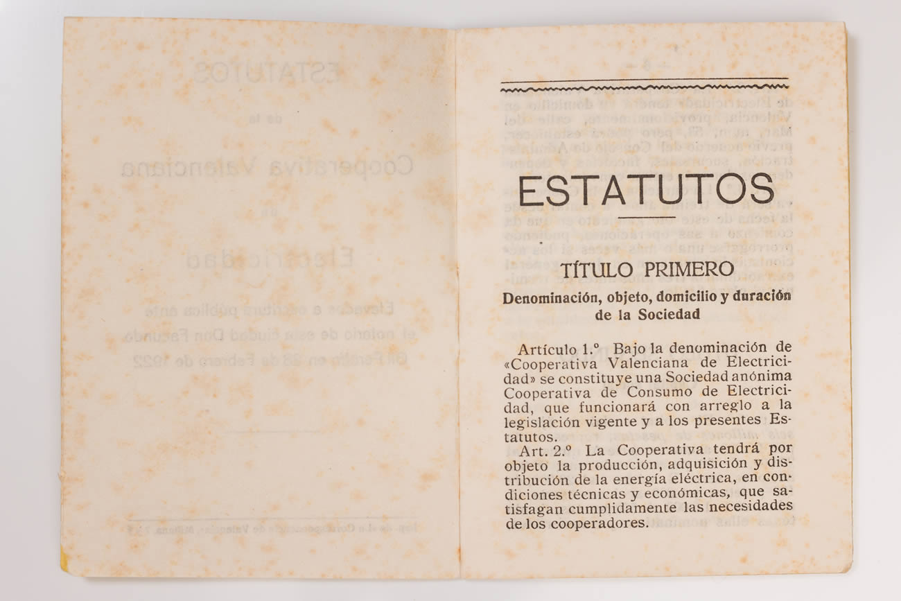 Cartilla con los Estatutos de la Cooperativa Valenciana de Electricidad.