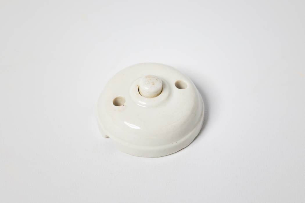 Interruptor de pulsación realizado integramente en porcelana blanca y para instalación en superficie
