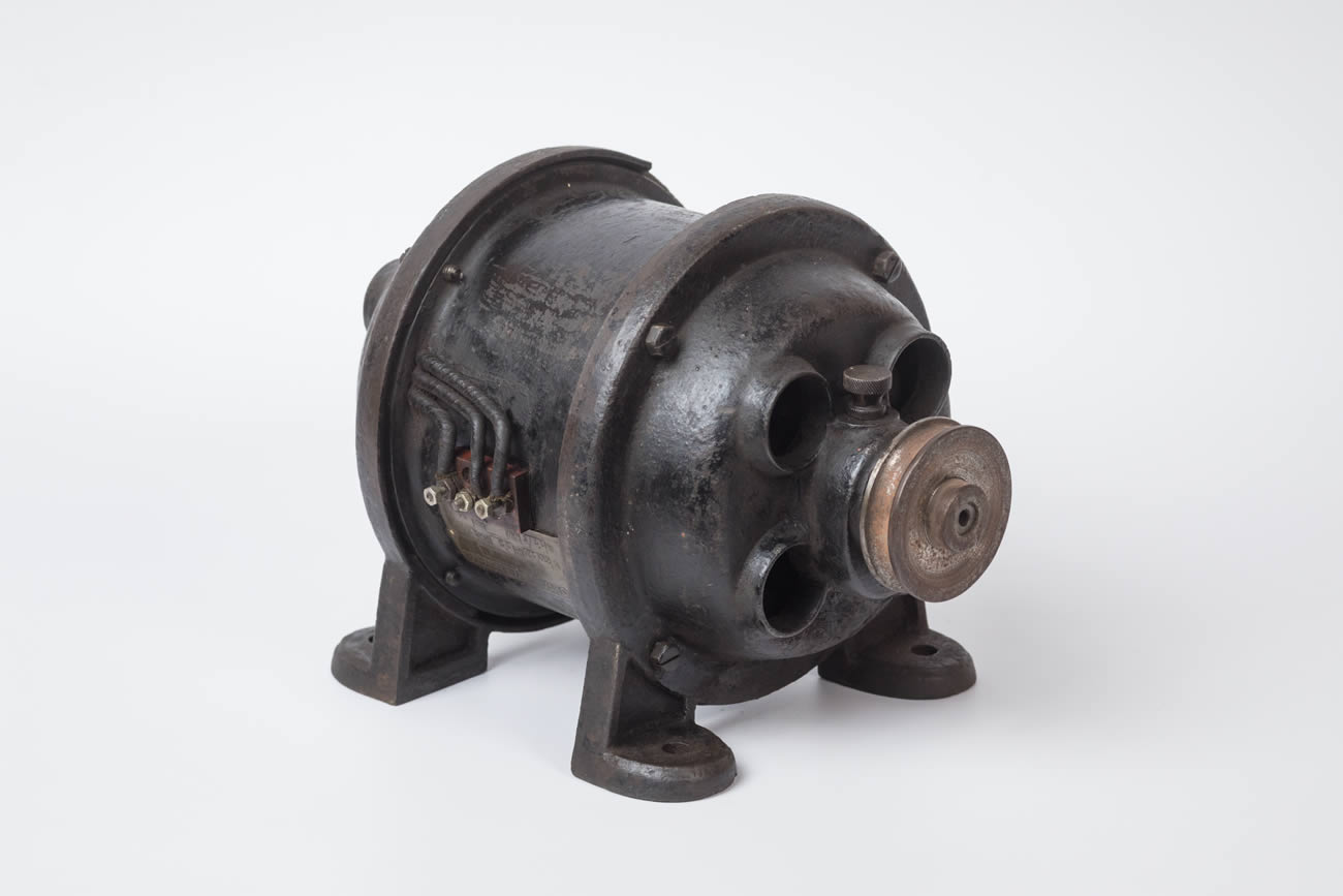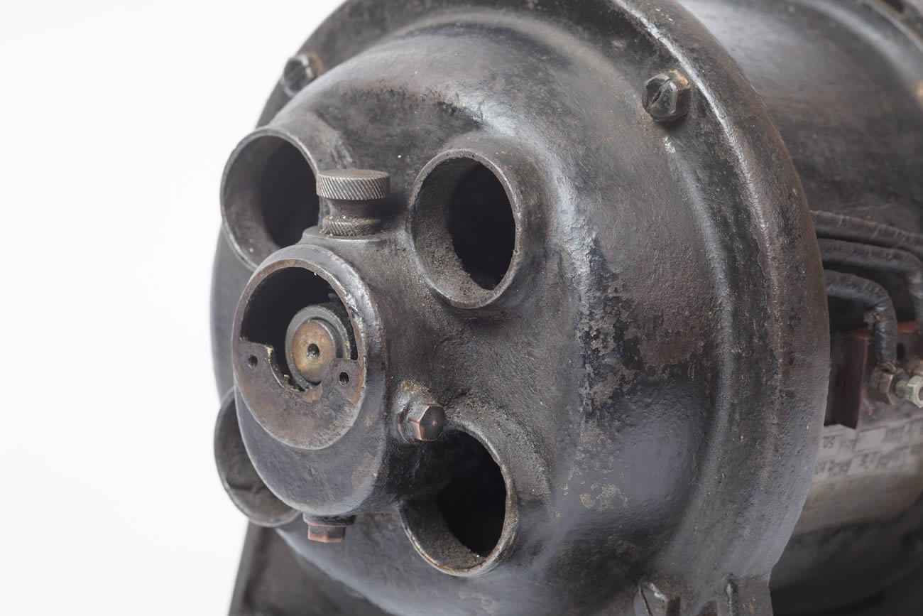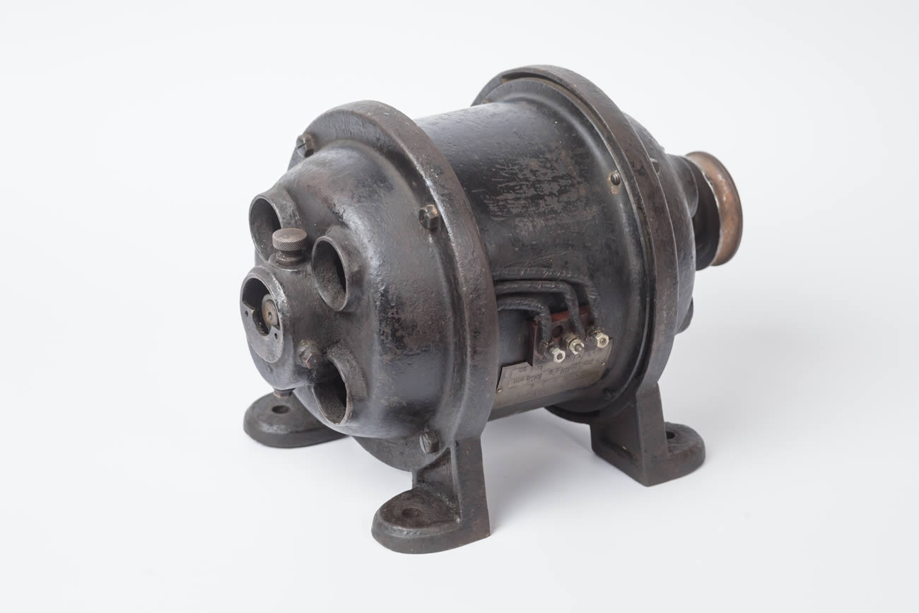 Presenta una chapa identificativa del lugar de producción del aparato (Taller de C.Barot), y otra con la empresa distribuidora eléctrica que emplea el motor (VOLTA S.A.)